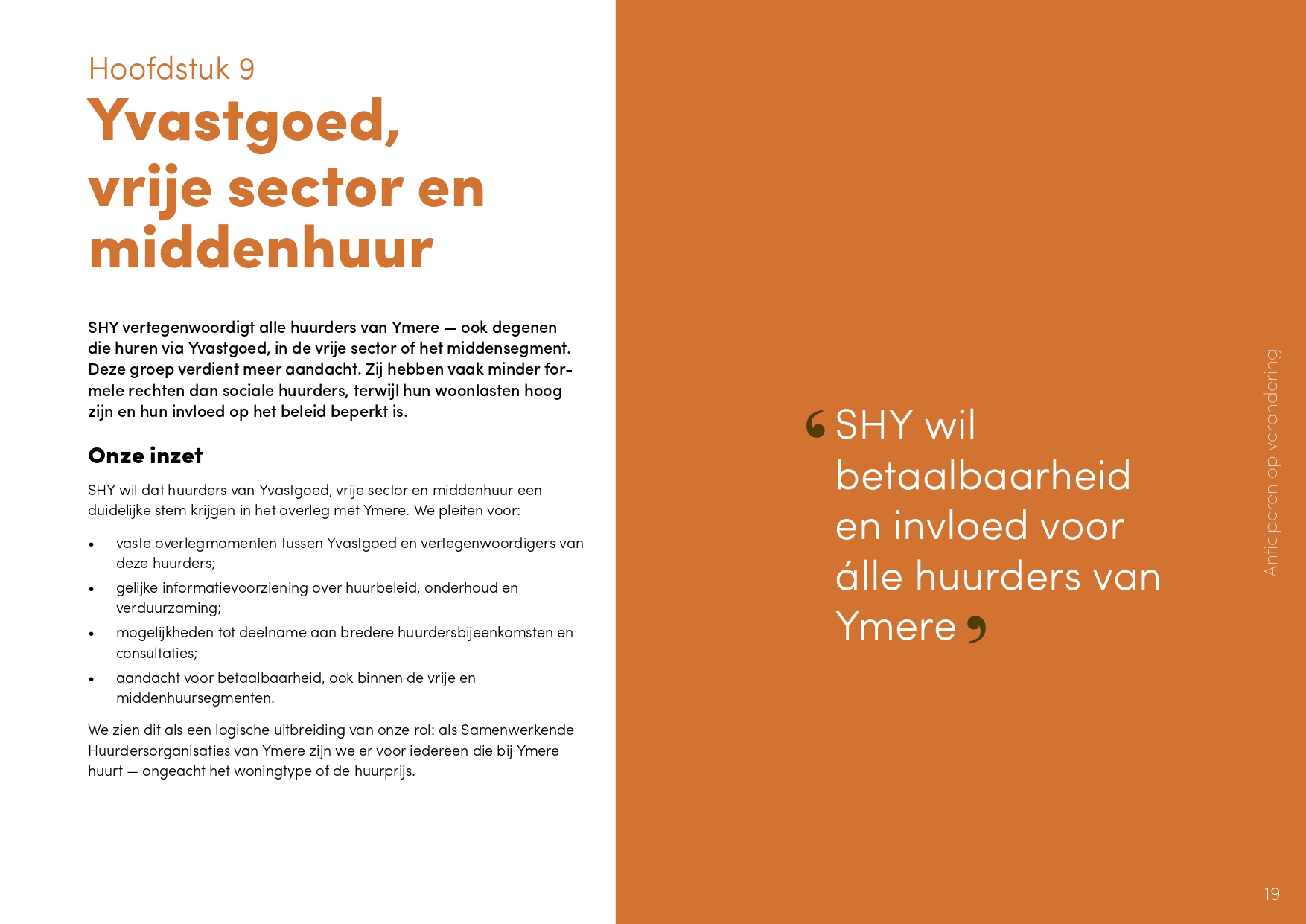 Met trots presenteren de Samenwerkende Huurdersorganisaties Ymere (SHY) het nieuwe meerjarenplan: Anticiperen op verandering. Dit plan laat zien hoe huurders zich blijven inzetten voor goed en betaalbaar wonen.
